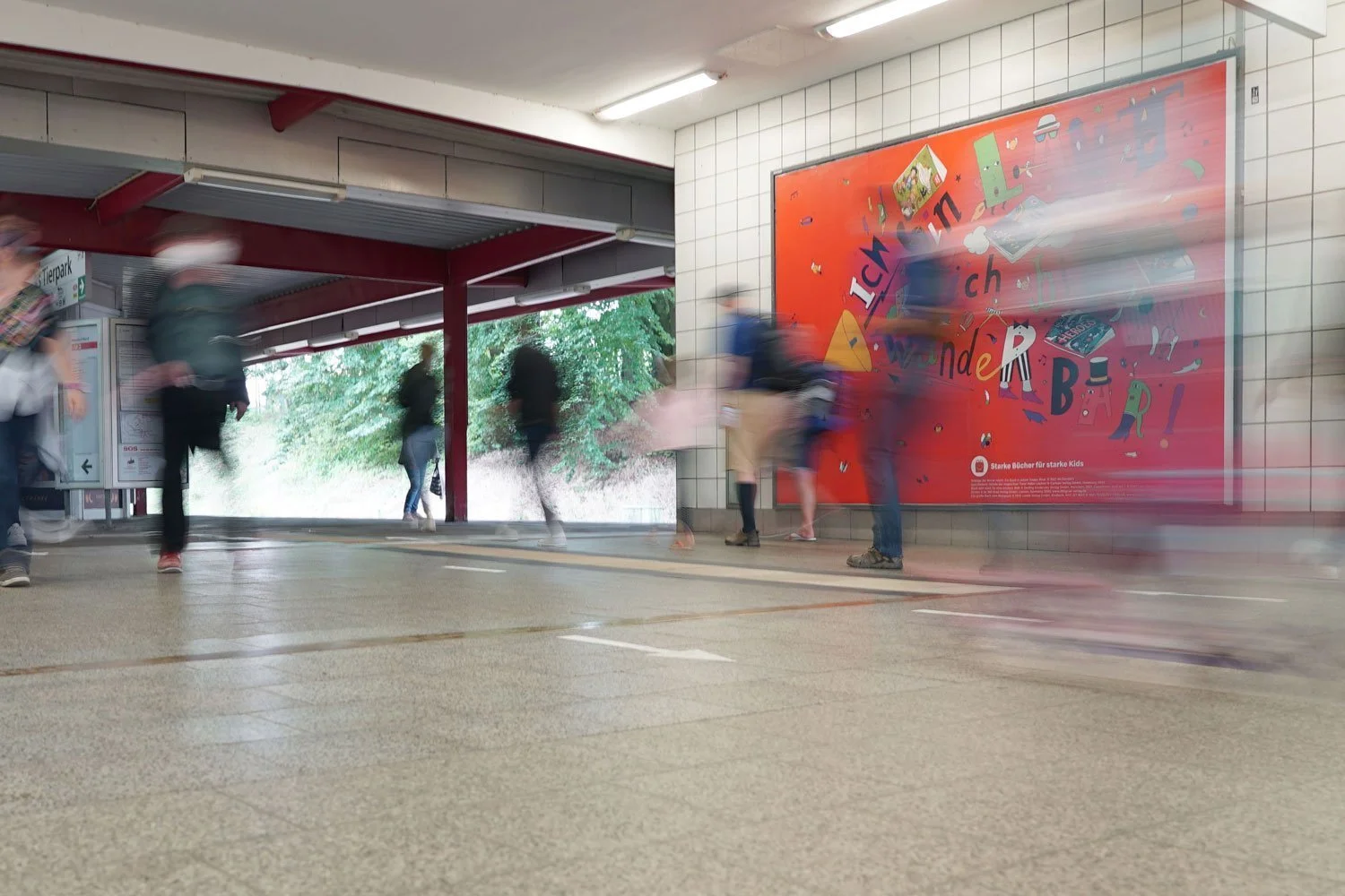 For the streets, we created 5-meter-long colourful billboards, where children could interact with my creations while having their photos taken.